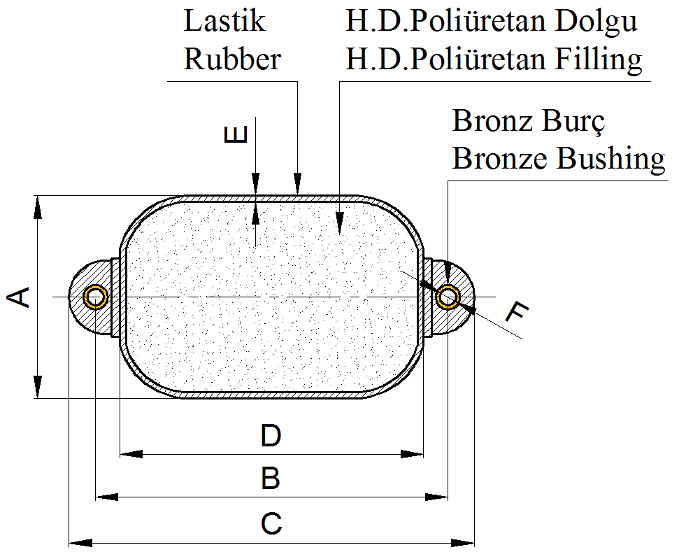 Bu tip usturmaçalar hafif ve taşınması kolaydır. Su içinde batmaz, asılarak veya yatay olarak montajı yapaılabilir; su içinde içinde yan pozisyonda iki tekne arasınada konulabilir. Darbeyi çok esnek bir şekilde alır. Dış kısmında çeşitli renklerde kılıfı vardır. Büyük modellerimizde çekme kuvvetini alması için karşılıklı mapalar 2 adet krom saplamalarla birbirine bağlıdır. Yan kuvvetlerde dışındaki lastik kılıf ve içindeki poliüretan sayesinde çok iyi esnenmiş olur.