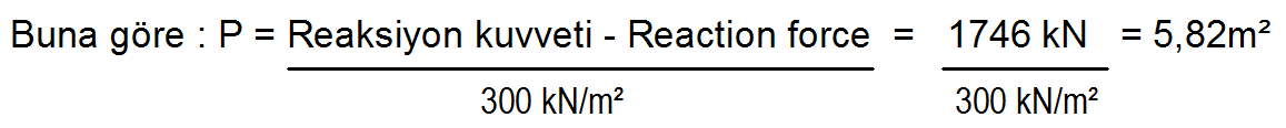 Panelin 1m² gelen kuvvet - The force applied to 1m² of the panel = 1746 kN ÷ 6/m² = 291 kN/m²